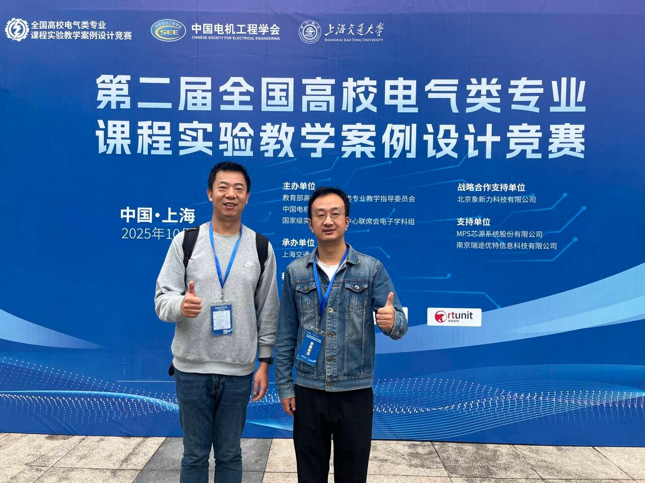 2025年10月17日至19日,第二届全国高校电气类专业课程实验教学案例设计竞赛全国总决赛在上海交通大学成功举办,来自全国25个省份、89所高校的144个参赛队伍、405名教师参加本次竞赛。我校自动化学院郭鑫、程刚团队以“面向工程应用实例的BUCKBOOST电路仿真与控制综合实验”为典型案例进入产教融合方向的复赛,现场详细介绍了该案例的教学背景、设计方法、实践特色和课程成效,并完成现场专家提问答辩,最终荣获全国二等奖。